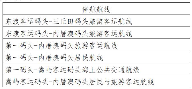 受強(qiáng)對(duì)流天氣影響,目前廈門輪渡部分水域不符合通航標(biāo)準(zhǔn),為確保安全,自2025年9月19日14:40起東渡客運(yùn)碼頭、第一碼頭、嵩嶼客運(yùn)碼頭、內(nèi)厝澳碼頭各航線停航,具體如下: